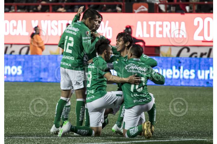 TIJUANA BAJA CALIFORNIA, 08MAYO2019.- José Juan Macías festeja con sus compañeros el gol anotado durante el partido entre Xoloitzcuintles de Tijuana contra los Panzas Verdes del León realizado en el estadio Caliente, como parte del partido de ida de los cuartos de final del torneo clausura 2019 de la Liga MX. Marcador final : Tijuana 1, León 3. FOTO: OMAR MARTÍNEZ /CUARTOSCURO.COM