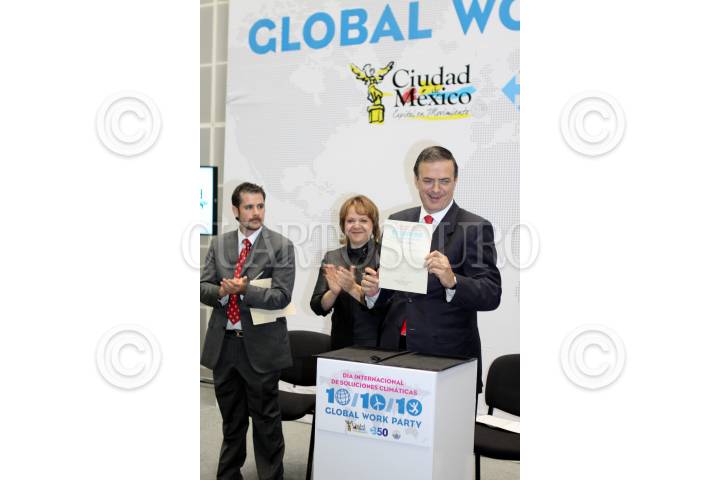 MÉXICO, D.F., 08OCTUBRE2010.- Martha Delgado Carrillo, secretaría del Medio Ambiente y Marcelo Ebrard Casaubón, Jefe de Gobierno, celebraron la ceremonia del Día Internacional de Soluciones Climáticas (10:10:10), ésta fue en el patio central del Antiguo Palacio del Ayuntamiento. FOTO: MOISÉS PABLO/CUARTOSCURO.COM