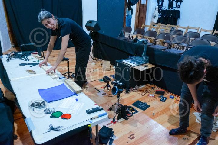 La compañía de Teatro Chipotle presentó su más reciente puesta en escena Tercera Llamada en La Enseñanza Casa de la Ciudad, en la cual realizan un montaje de sombras a partir de figuras artesanales.