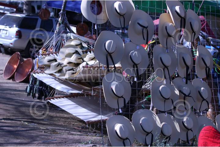 Venta de sombreros calentanos en la Feria de la Loma en Mazatepec.