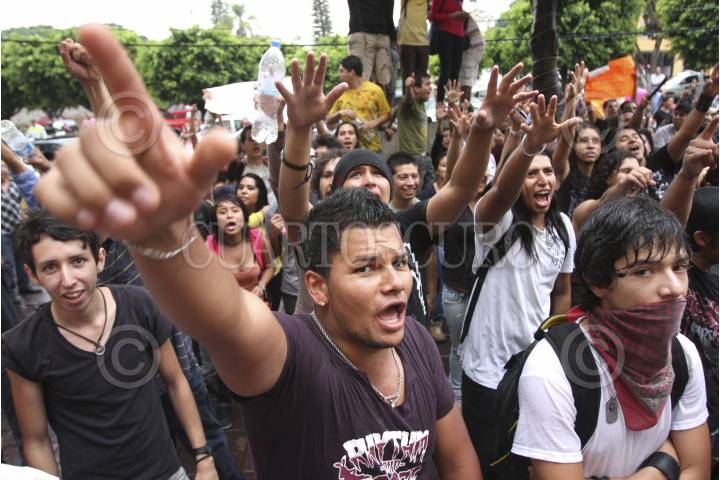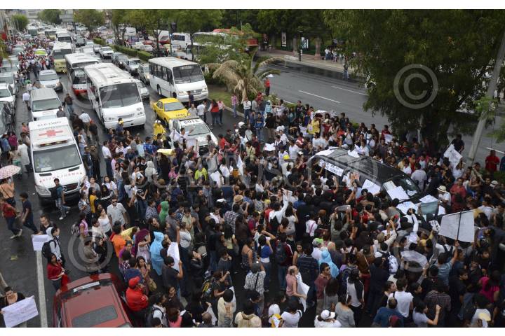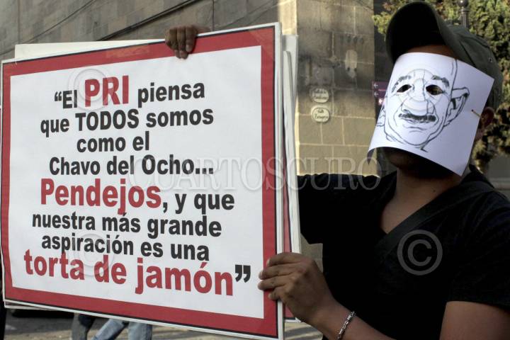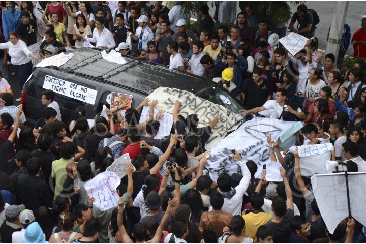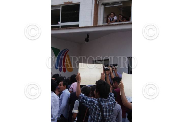 OAXACA, OAXACA, 23MAYO2012.- Aproximadamente 800 universitarios se manifestaron en contra de Enrique Peña Nieto candidato a la presidencia del PRI, Televisa y Tv Azteca. Los estudiantes lanzaron un mensaje a los 131 estudiantes de la Universidad Iberoamericana "Ibero, aguanta, Oaxaca se levanta". FOTO: ARTURO PEREZ ALFONSO /CUARTOSCURO.COM
