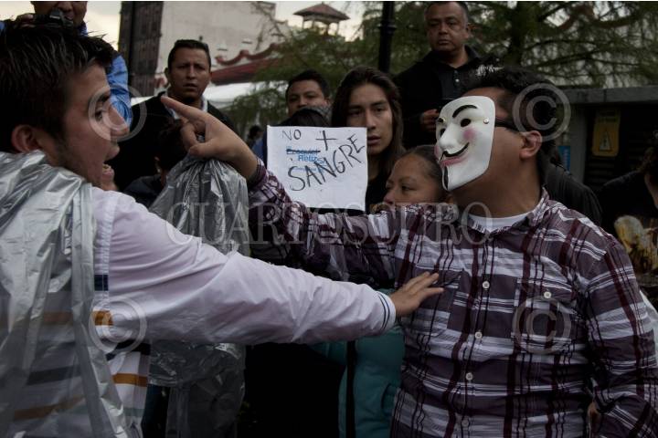 QUERETARO, QUERETARO, 24MAYO2012.- Durante el mitín del candidato de la coalición "Compromiso por México", Enrique Peña Nieto, se suscitó una manifestación de jóvenes que protestaba por la visita del priísta. FOTO: HUGO CAMACHO /CUARTOSCURO.COM