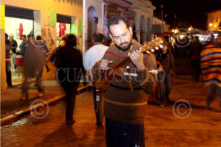 TLACOTALPAN, VERACRUZ, 01FEBRERO2010.- Dentro de las festividades que honran a la virgen de la candelaria en esta ciudad, se celebró el encuentro de jaraneros y decimistas donde cientos de músicos de México y el mundo se dieron cita y realizaron el famoso Fandango el cual consiste en tocar son jarocho y bailar zapateado durante toda la madrugada en las principales plazas de Tlacotalpan. FOTO: FÉLIX MÁRQUEZ/CUARTOSCURO.COM