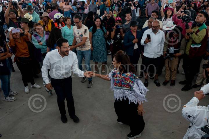 Martí Batres y Clara Brugada durante la inauguración del “Bailodromo Paz, Baile y Mitote” así como de la última etapa de construcción del Parque Cuitláhuac en Iztapalapa.