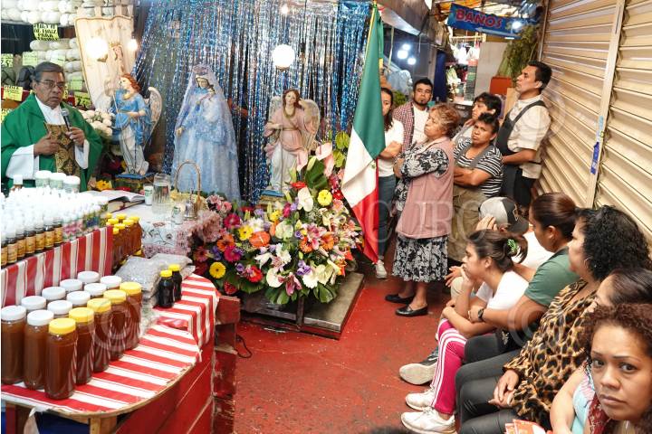CIUDAD DE MÉXICO, 24SEPTIEMBRE2023.- Entre música, sonideros, comida y baile, locatarios, vecinos y visitantes acudieron a celebrar a la Virgen de la Merced en el marco del 66 Aniversario de los Mercados de la Merced. FOTO: GRACIELA LÓPEZ /CUARTOSCURO.COM