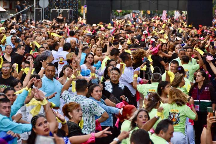 CIUDAD DE MÉXICO, 26ABRIL2025.- La avenida 20 de noviembre en el Zócalo Capitalino se convirtió en una pista de baile para celebrar el Día Internacional de la Danza: Homenaje a Tongolele y Clubes de Baile, evento impulsado por la Secretaría de Cultura de la Ciudad de México, que reunió a 78 clubes, 30 sonideros y más de 3 mil asistentes. FOTO: GOBIERNO DE LA CIUDAD DE MÉXICO/CUARTOSCURO.COM