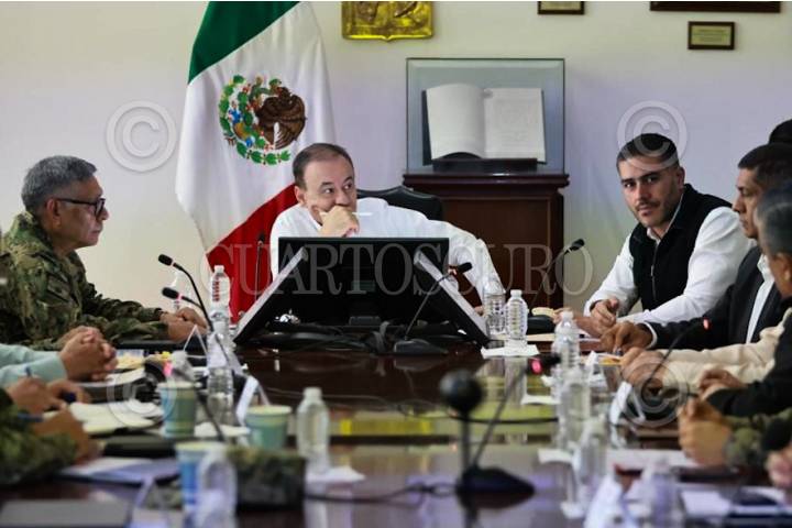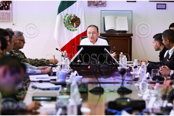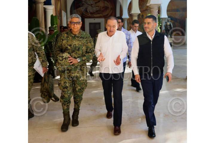 HERMOSILLO, SONORA. 09OCTUBRE2024.- El secretario de seguridad y Protección Ciudadana, Omar García Harfuch, el gobernador de Sonora Alfonso Durazo y el almirante Raymundo Pedro Morales, sostuvieron un encuentro en el palacio de Gobierno, con el fin de disminuir la inseguridad en el Estado. FOTO: CUARTOSCURO.COM