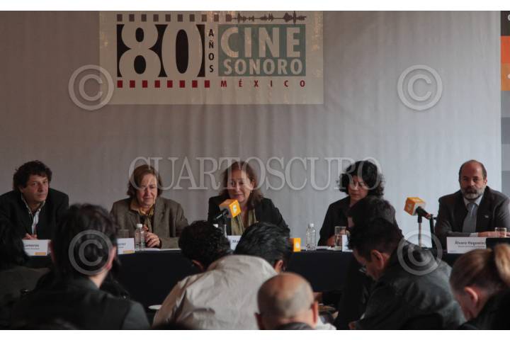 MÉXICO, D.F., 04OCTUBRE2011.- Manuel Gameros, Director General de Estudios Churubusco junto a Guadalupe Ferrer, Directora de la Filmoteca de la UNAM; Marina Stavenhagen, Directora General de IMCINE; Paula Astorga, Directora General de Cineteca Nacional y y Alvaro Hegewisch, Director de la Fonoteca Nacional durante la conferencia de prensa donde anunciaron las actividades que realizaran por los 80 años del cine sonoro en México. FOTO: ENRIQUE ORDÓÑEZ/CUARTOSCURO.COM