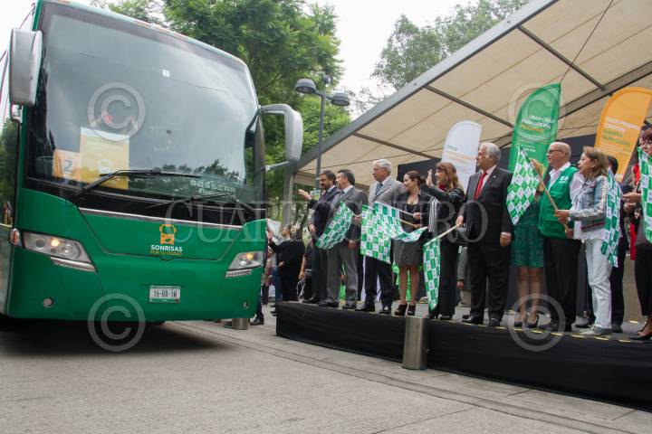 CIUDAD DE MÉXICO, 11JULIO2019.- Niños y padres de familia, durante el banderazo inaugural para el recorrido de los autobuses del Programa de Verano “Sonrisas por tu Ciudad”, el cual tiene como objetivo el disfrute del turismo para toda la ciudadania, especialmente para la población, vulnerable. FOTO: ROGELIO MORALES /CUARTOSCURO.COM