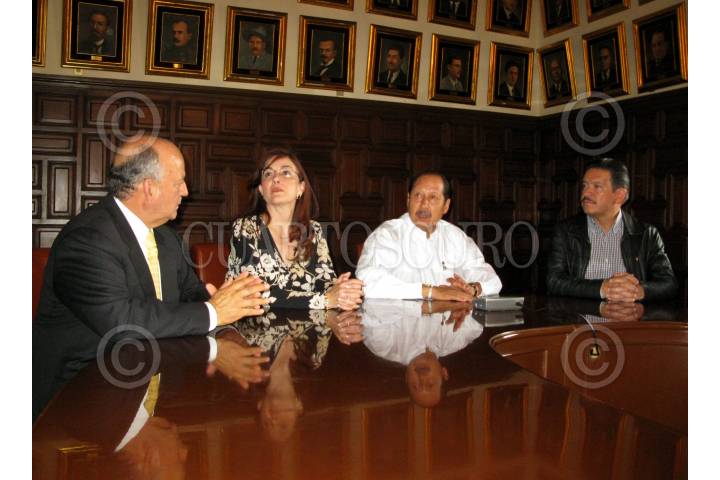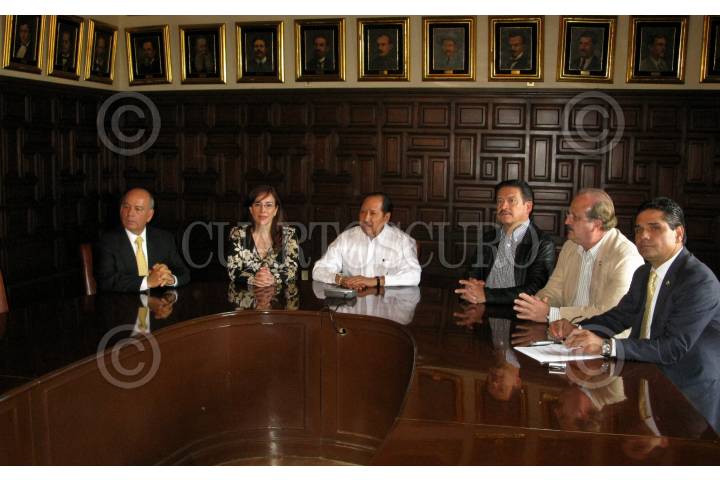 MORELIA, MICHOACAN, 19JULIO2009.- Los senadores del PRD, Carlos Navarrete Ruiz, Yeidckol Polevnsky Gurwitz, Jesús Garibay García, Silvano Aureoles Conejo y Graco Ramírez sostuvieron una reunión con el gobernador de Michoacán, Leonel Godoy Rangel, donde abordaron el tema de la situación que priva en la entidad tras el aribo de efectivos militares y policías federales. FOTO: CUARTOSCURO.COM