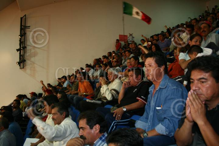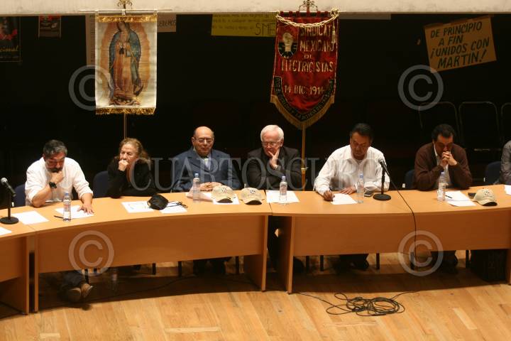 MÉXICO, D.F., 13NOVIEMBRE2009.- Electricistas prestan atención a la asamblea informativa que encabezaron La senadora Rosario Robles, los obispos, Samuel Ruiz, Raúl Vera , Martín Esparza secretario general del Sindicato Mexicano de Electricistas (SME) , en las instalaciones del sindicato. FOTO: SASHENKA GUTIÉRREZ/CUARTOSCURO.COM