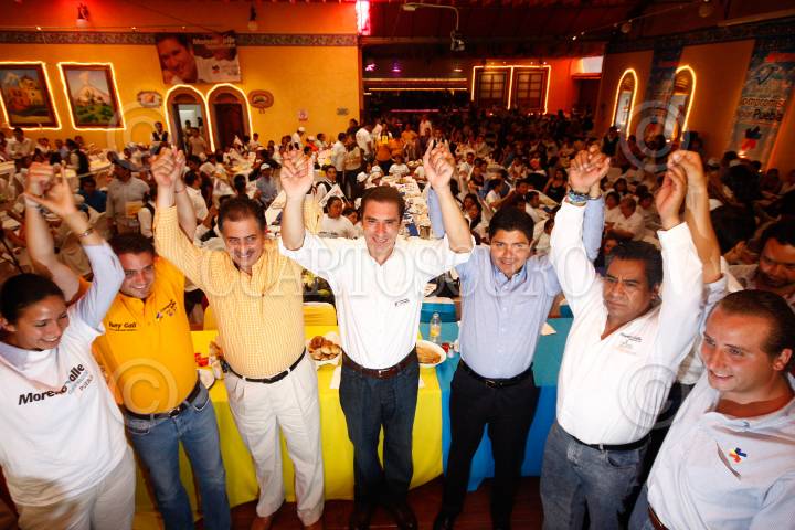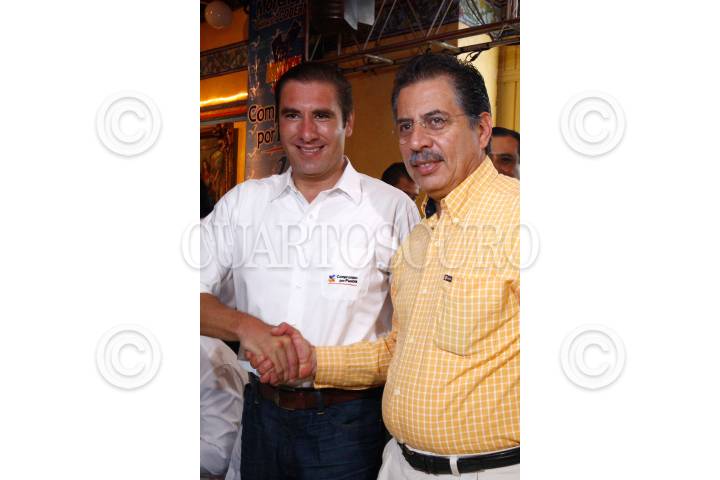 PUEBLA, PUEBLA, 13JUNIO2010.- Jesús Ortega, Presidente nacional del PRD, respaldo a Rafael Moreno Valle Rosas, candidato a gobernador por la alianza "Compromiso por Puebla", durante un mítin que sostuvieron con jóvenes universitarios y maestros agremiados del SNTE sección 51. FOTO: FRANCISCO GUASCO/CUARTOSCURO.COM