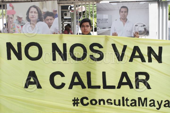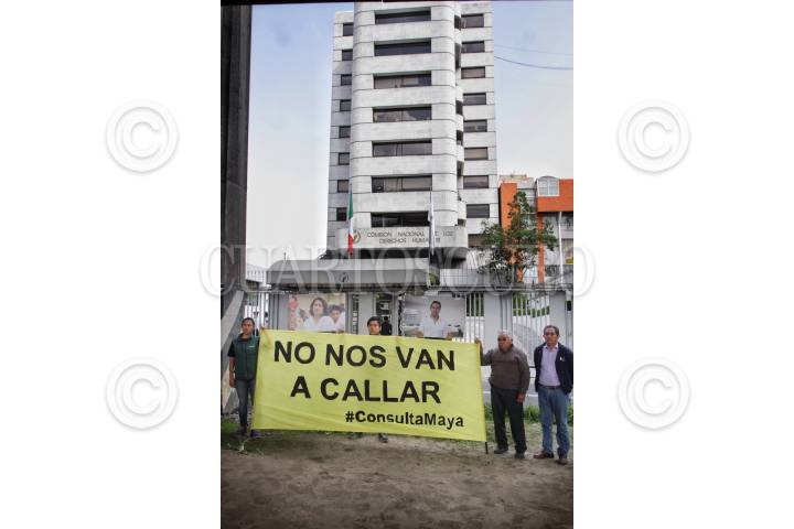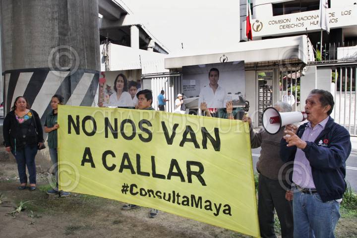 CIUDAD DE MÉXICO, 08AGOSTO2017.- Representantes de comunidades mayas de los municipios de Hopelchén y Tenabo, Campeche, protestaron frente a las oficinas de la Comisión Nacional de Derechos Humanos, por el hostigamiento e intimidación del que son víctimas por su participación en la consulta indígena ordenada por la Suprema Corte de Justicia de la Nación y recomendada por la Comisión Nacional de Derechos Humanos sobre los permisos de liberación de soya transgénica al medio ambiente. FOTO: ISAAC ESQUIVEL /CUARTOSCURO.COM