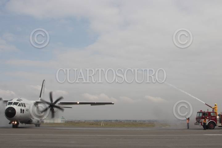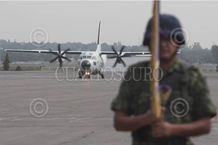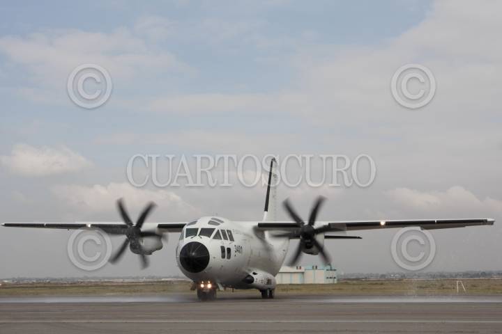 TECAMAC, ESTADO DE MÉXICO, 30SEPTIEMBRE2011.- Elementos de la Fuerza Aérea Mexicana, presentaron el avión C-27J Spartan en la base aerea de Santa Lucia, el cual desempeñara las misiones de transporte de personal y carga, Lanzamiento de aerotropas, evacuaciones medicas y operaciones especiales. FOTO: ENRIQUE ORDÓÑEZ/CUARTOSCURO.COM