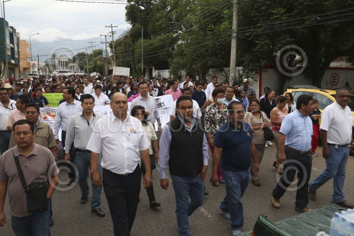 OAXACA, OAXACA, 27MAYO2015.- Integrantes de la sección 35 del Sindicato Nacional de los Trabajadores de la Secretaría de Salud (SNTSA) realizaron una marcha en la ciudad de Oaxaca para exigir a la Secretaría de Salud de Oaxaca (SSO) que encabeza, Germán Tenorio Vasconcelos el cumplimiento de las minutas de acuerdo signadas, en tanto esto no ocurra, el paro de labores no concluirá. FOTO: ARTURO PÉREZ ALFONSO /CUARTOSCURO.COM