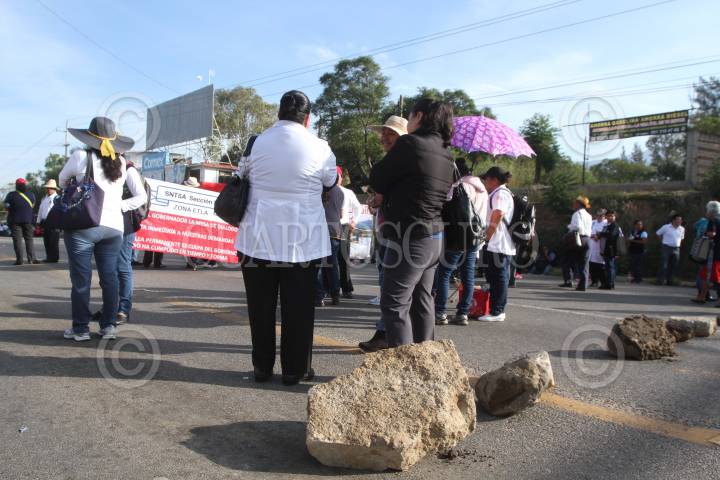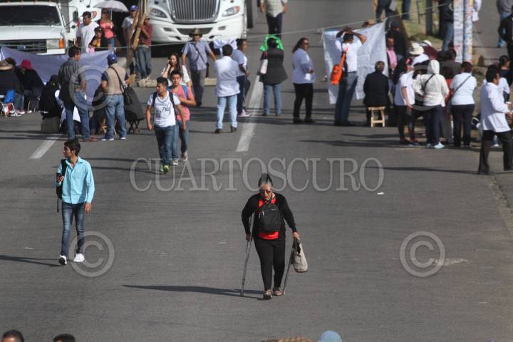 OAXACA, OAXACA., 19OCTUBRE2016.- Integrantes del Sindicato Nacional de los Trabajadores de la Secretaría de Salud (SNTSA) bloquearon este miércoles los principales accesos a la ciudad de Oaxaca, para demandar al gobierno de Gabino Cué la culminación de 67 obras que el ejecutivo prometió de las cuales no ha sido concluida ninguna, además de la entrega de los uniformes correspondientes al año 2016 y el pago a terceros institucionales y no institucionales. FOTO: ARTURO PÉREZ ALFONSO /CUARTOSCURO.COM