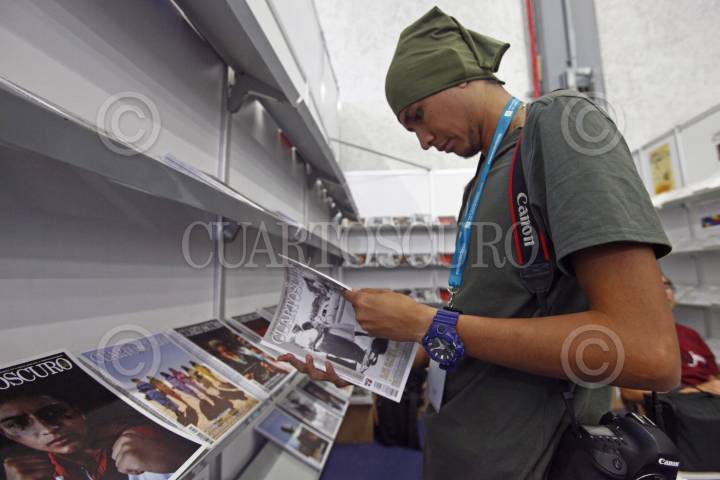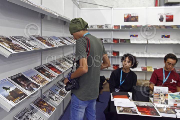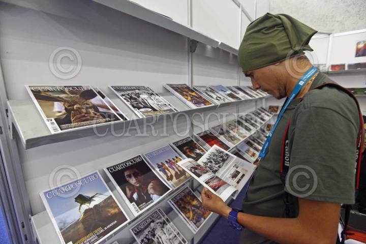 GUADALAJARA, JALISCO. 05DICIEMBRE2024.- Stand de la Revista Cuartoscuro en la edición 38 de la Feria Internacional del Libro De Guadalajara (FIL), que se lleva a cabo instalaciones de la Expo Guadalajara, en donde el País Invitado de Honor es España. FOTO: FERNANDO CARRANZA GARCIA / CUARTOSCURO.COM