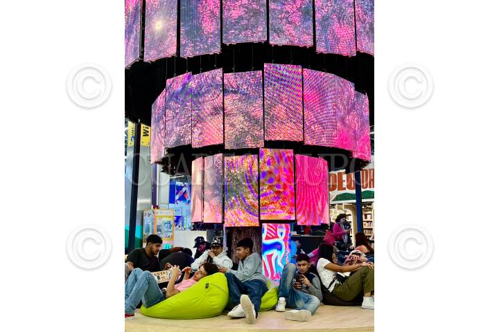 GUADALAJARA, JALISCO, 02DICIEMBRE2024.- Reposo de un recorrido por los libros en el stand de la Universidad de Guadalajara en la Feria Internacional del Libro. FOTO: ANA LUISA ANZA/CUARTOSCURO.COM