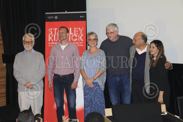 CIUDAD DE MÉXICO, 29NOVIEMBRE2016.- Inauguran en la Cineteca Nacional la exposición del director de cine, guionista, productor y fotógrafo Stanley Kubrick, dicha exhibición está compuesta por aproximadamente mil objetos como fotografías, pósters, cámaras de video y fotográficas, guiones, maquetas, vestuarios utilizados en las películas que realizó Kubrick, así como accesorios personales. En la imagen Jan Harlan, productor de Kubrick, Katharina Kubrick, hija del cineasta, Hans Peter , curador y Alejandro Pelayo, director de la Cineteca Nacional. FOTO: SAÚL LÓPEZ /CUARTOSCURO.COM