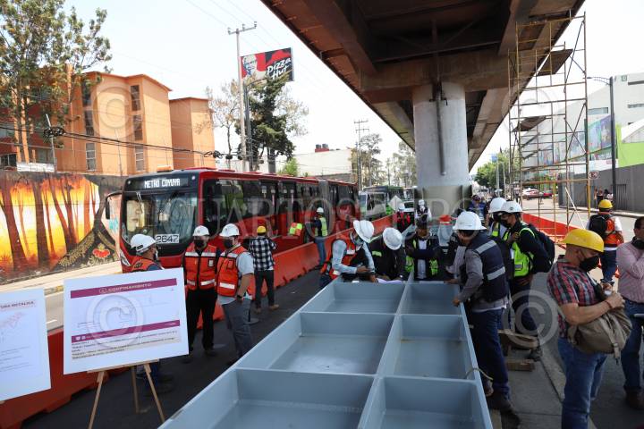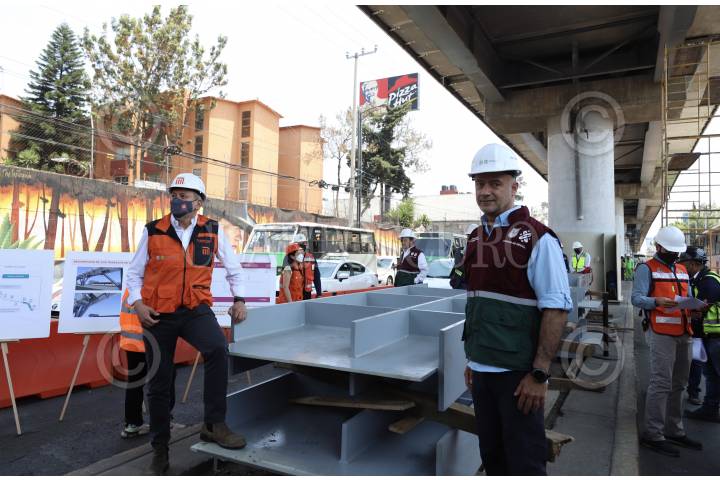 El Secretario de Obras y Servicios, Jesús Esteva Medina, y el Director General del Sistema de Transporte Colectivo Metro, Guillermo Calderón Aguilera, presentan los avances de los trabajos de rehabilitación de la Línea 12 tramo elevado.