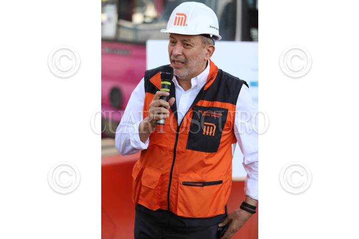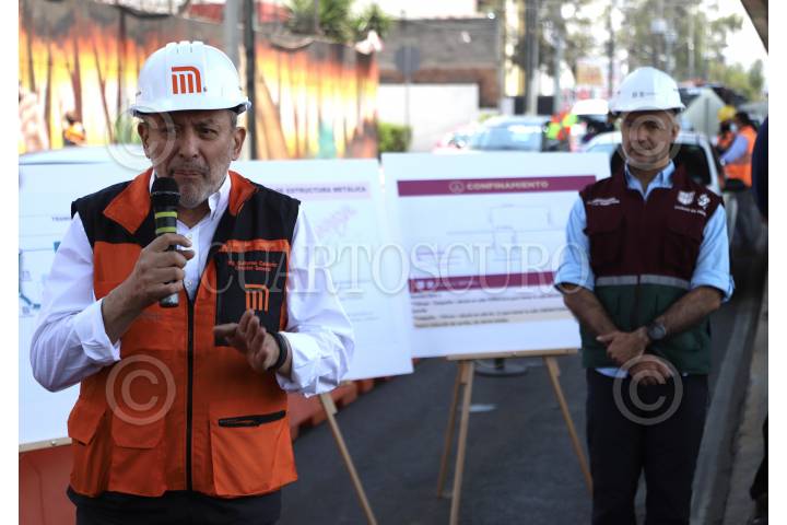 El Director General del Sistema de Transporte Colectivo Metro, Guillermo Calderón Aguilera durante la presentación de las estructuras metálicas para el reforzamiento de la línea 12 del Metro.