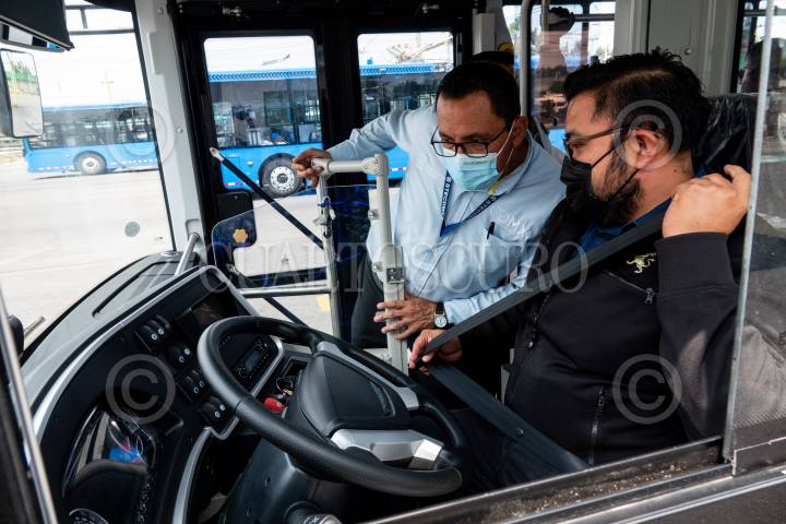 Conductores acuden a las oficinas de Sistema de Servicios de Transportes Eléctricos para capacitarse teórica y prácticamente en la conducción de unidades que otorgarán servicio en el nuevo trolebús elevado sobre Calzada Ermita Iztapalapa.