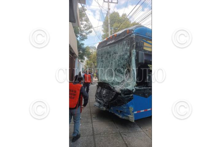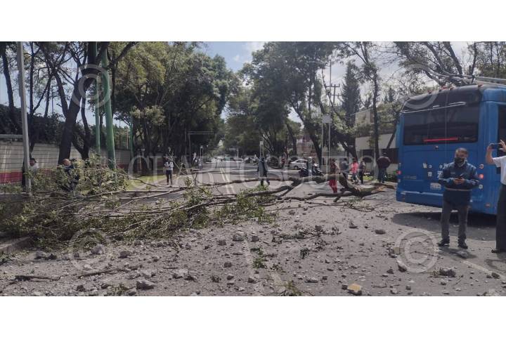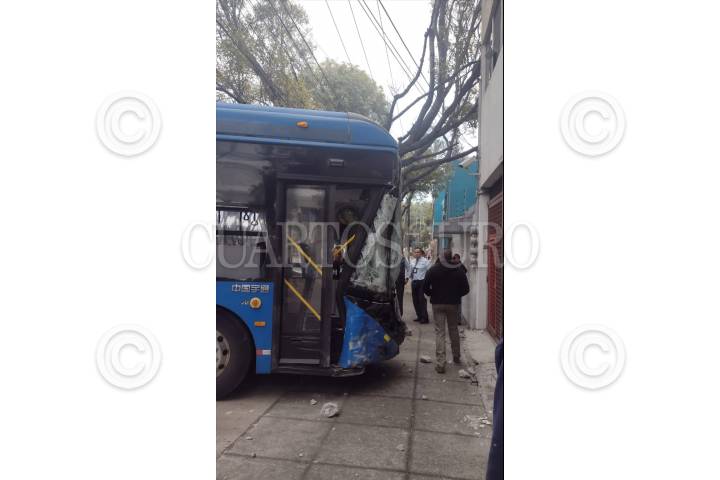 Accidente de trolebús sobre Eje 7 que dejó como saldo una barda derribada, ramas y daños a la unidad.