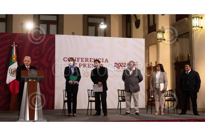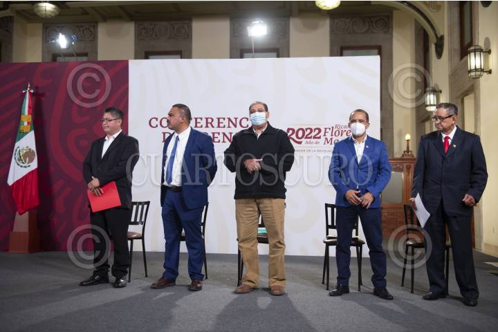 Candidatos a la secretaria general del STPRM en la mañanera del Presidente.