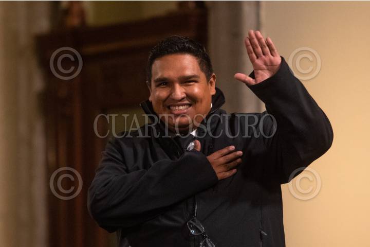 Ricardo Aldana es uno de los 25 candidatos que buscan dirigir el Sindicato de Trabajadores Petroleros de la República Mexicana (STPRM), durante su exposición en la mañanera.