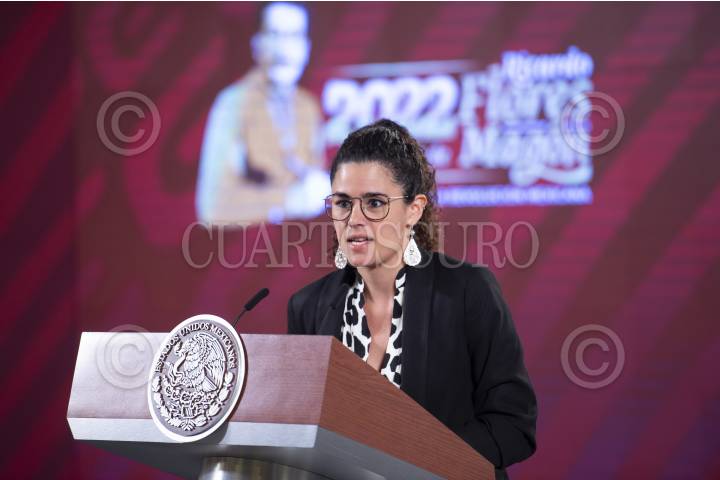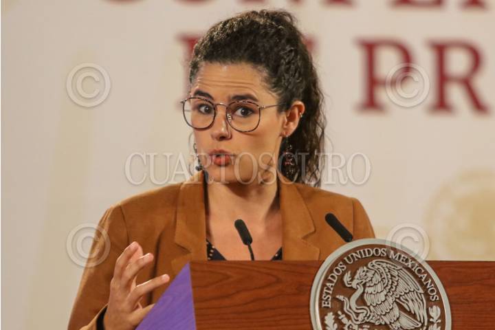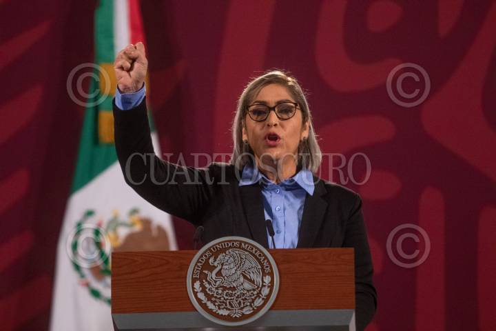 Luisa María Alcalde, secretaria de Trabajo, durante su participación en la conferencia mañanera.