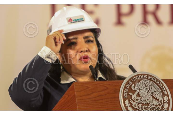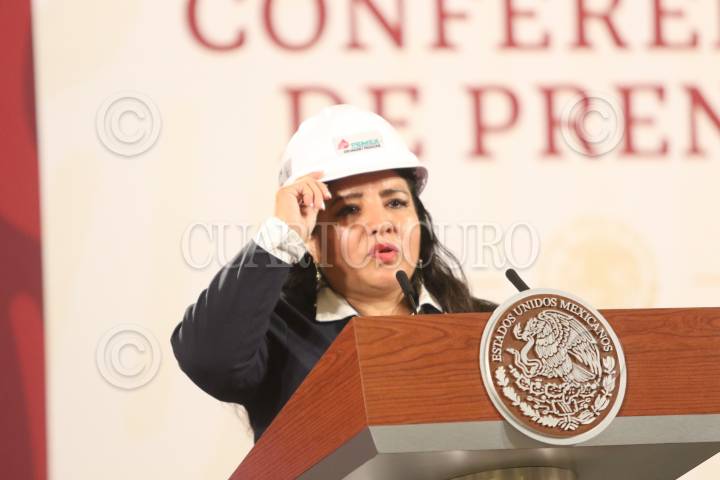 Victoria Arredondo Lami es una de los 25 candidatos que buscan dirigir el Sindicato de Trabajadores Petroleros de la República Mexicana (STPRM), durante su exposición en la mañanera.