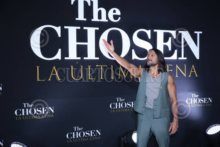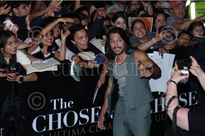 CIUDAD DE MÉXICO, 02ABRIL2025. Uno de los protagonistas Abe Bueno-Jallad a su llegada a la alfombra turquesa por el estreno para Latinoamérica de la serie “The Chosen: La ultima cena”, que llega a su quinta temporada, transmitiéndose por plataformas de streaming. FOTO: EDGAR NEGRETE LIRA/CUARTOSCURO.COM