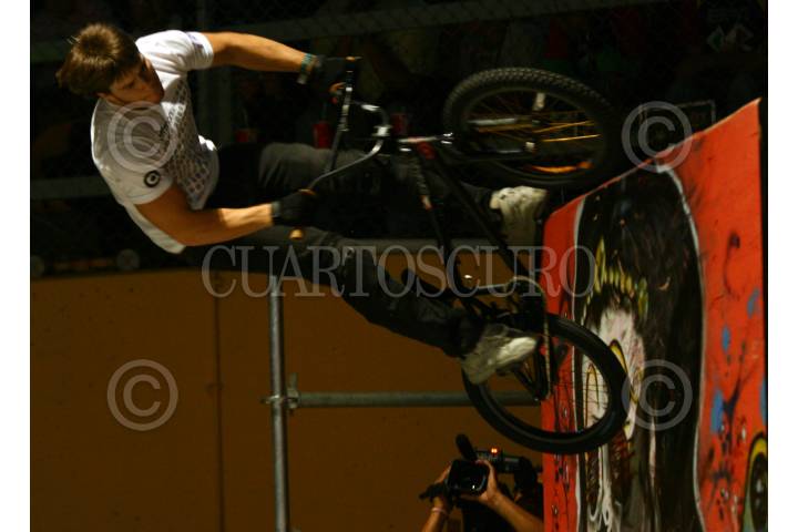 MÉXICO,D,F.,08SEPTIEMBRE2007.-Dentro de las eliminatorias de BMX street los competidores desarrollaron sus mejores trucos en el X games México desarollados en el Palacio de los Deportes. FOTO:SASHENKA GUTIERREZ/CUARTOSCURO.COM