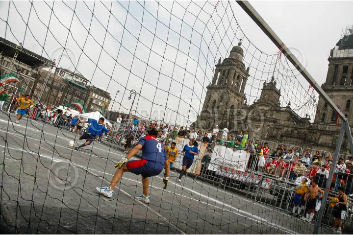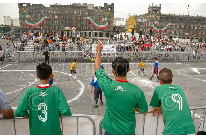 MÉXICO D.F., 28AGOSTO2008.- En la plancha del Zócalo capitalino se realiza el torneo de fútbol de niños y Jóvenes en Situación de Calle del DF, Veracruz, Michoacán, Morelos y Estado de México para seleccionar a los representantes de México en la Copa Mundial Street Soccer Australia 2008. FOTO: RODOLFO ANGULO/CUARTOSCURO.COM