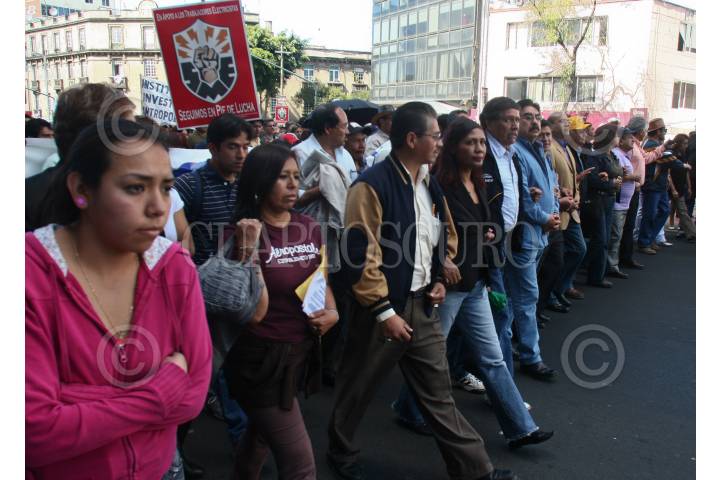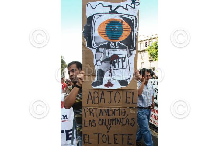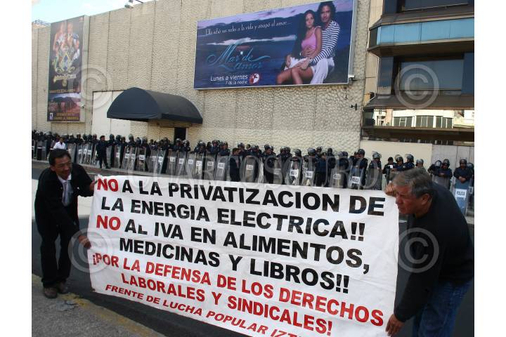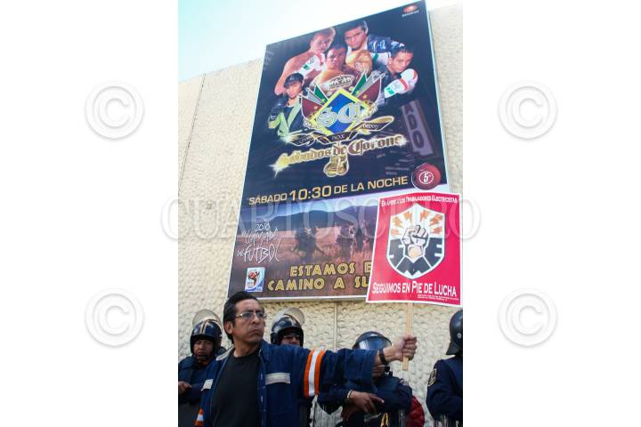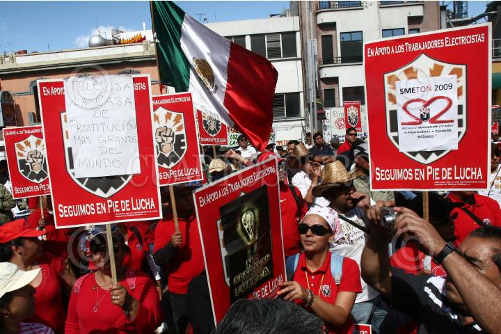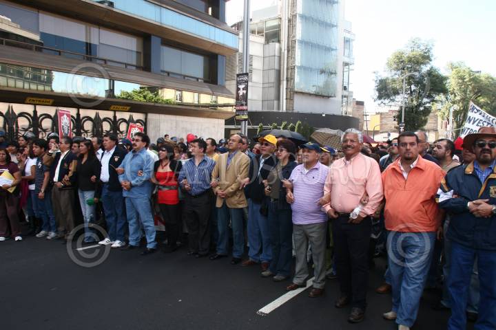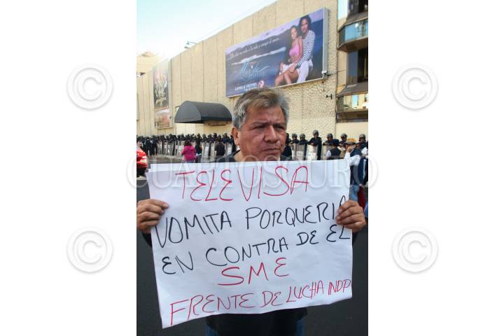 MÉXICO, D.F., 04DICIEMBRE2009.- Integrantes del Sindicato Mexicano de Electricistas y del STUNAM realizaron un mitin frente a las instalaciones de Televisa Chapultepec, ésto como parte de la movilización masiva que organizo el SME en el marco de la conmemoración del 95 aniversario de la toma simbólica de la ciudad de México en 1914. FOTO: SAÚL LÓPEZ/CUARTOSCURO.COM