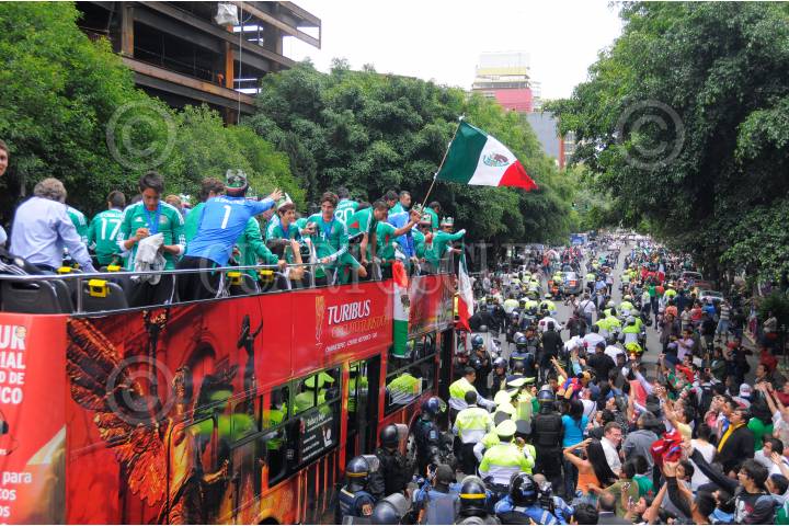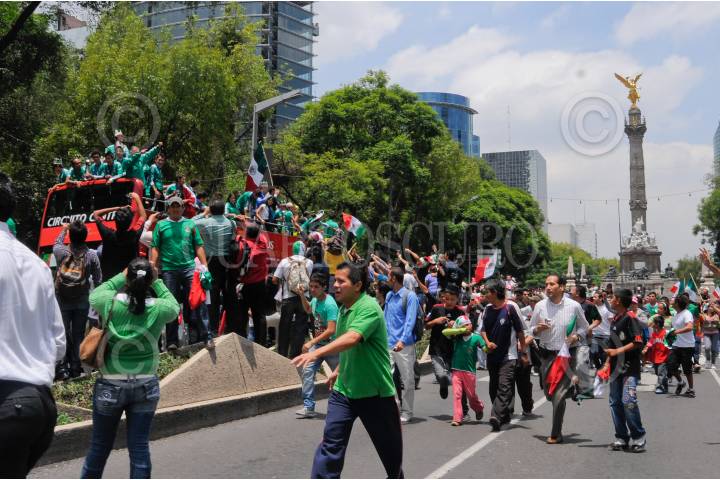 MÉXICO, D.F., 11JULIO2011.- Miles de aficionados salieron a las calles para vitorear a los seleccionados nacionales de Futbol Sub-17, en calles del Distrito Federal. FOTO: FRANCISCO RODRIGUEZ/CUARTOSCURO.COM