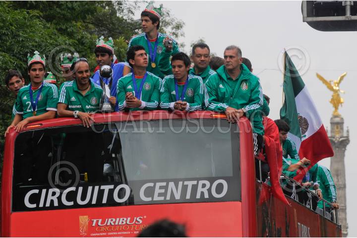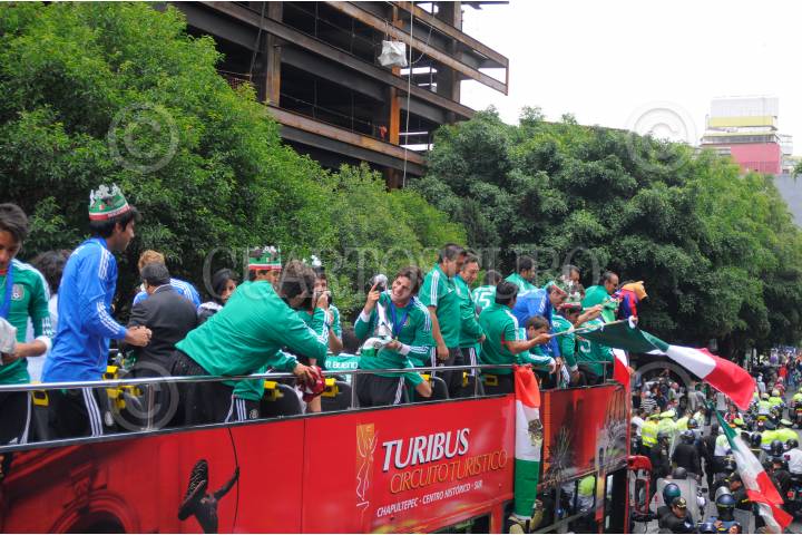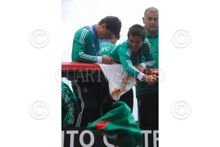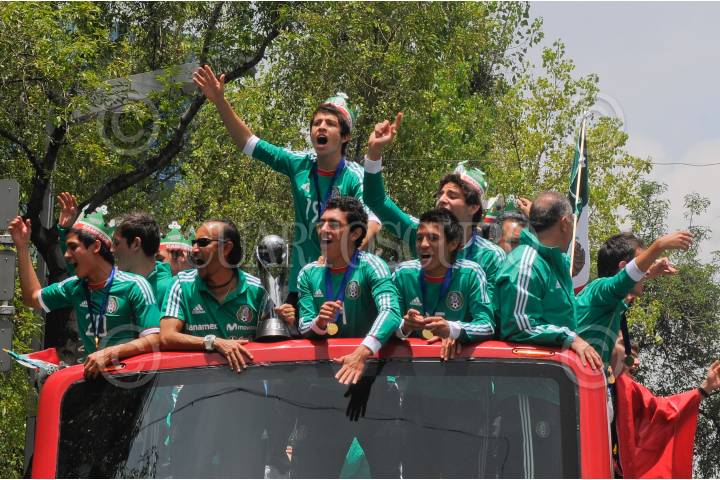 MÉXICO, D.F., 11JULIO2011.- Los seleccionados nacionales de Futbol Sub-17, salieron a las calles del Distrito Federal para festejar el campeonato del mundo ganado anoche ante el equipo nacional de Uruguay y realizado en el Estadio Azteca. FOTO: FRANCISCO RODRIGUEZ/CUARTOSCURO.COM