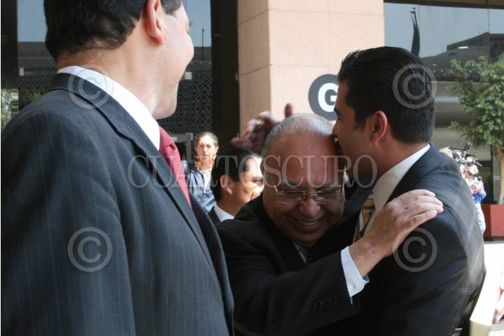 MÉXICO D.F.13MARZO2008.-Juan de Dios Castro, subprocurador de los Derechos Humanos acudio a la Cámara de Diputados una reunión de trabajo con la comisión de en cotra de agresiones a periodistas.En la imagen saludado por su hijo el diputado (PAN) Juan de Dios Castro, dandole un beso en la cabeza. FOTO:GUILLERMO PEREA/CUARTOSCURO.COM