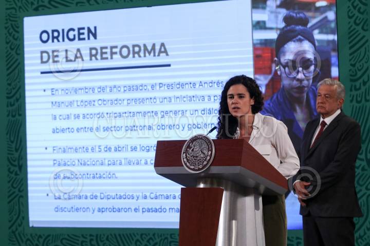 Luisa María Alcalde durante la conferencia matutina donde se anunció la reforma en materia laboral que regulara la subcontratación.