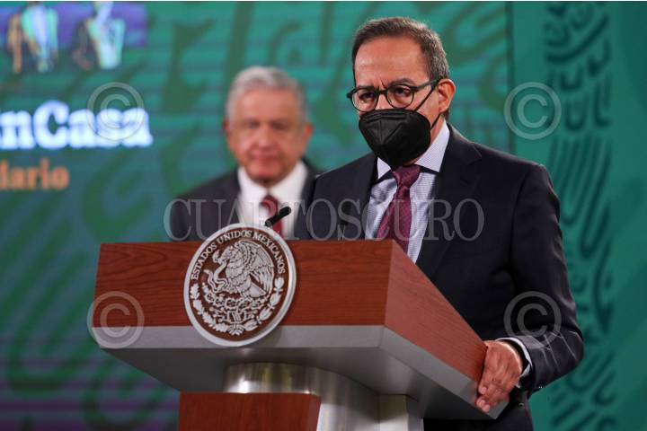 Carlos Salazar Lomeli durante la conferencia matutina donde se anunció la reforma en materia laboral que regulara la subcontratación.