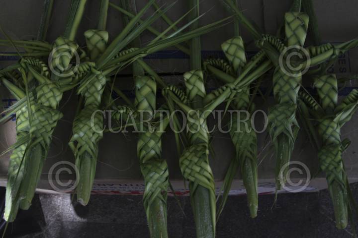 ACAPULCO, GUERRERO, 19MARZO2016.- Habitantes de poblados cercanos al puerto llegan a este destino turístico para vender las palmitas que se utilizan en la celebración católica de Domingo de Ramo. Los comerciantes se colocan en las inmediaciones de la catedral, tal es el caso de doña Mar que se acompaña de su pequeño hijo, quien duerme una siesta entre las palmitas. FOTO: BERNANDINO HERNÁNDEZ /CUARTOSCURO.COM
