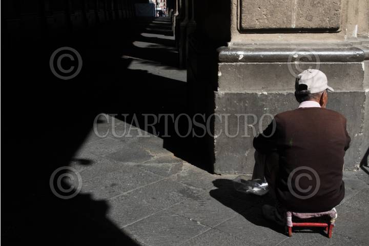 CIUDAD DE MÉXICO, 25NOVIEMBRE2018.- Un bolero en espera de algún cliente en los arcos del Antiguo Palacio del Ayuntamiento, en el Centro Histórico. FOTO: MOISÉS PABLO /CUARTOSCURO.COM
