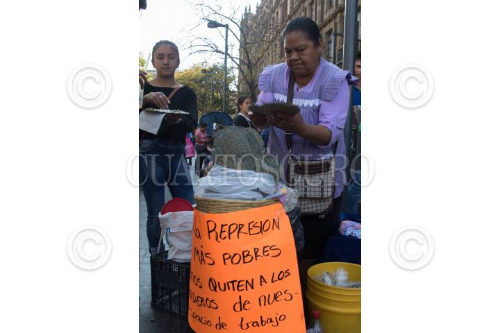 CIUDAD DE MÉXICO, 29DICIEMBRE2018.- Vendedores de comida y artesanías de diferentes comunidades indígenas radicadas en la ciudad ofrecen sus mercancías a un costado del Antiguo Palacio del Ayuntamiento, en sus puestos están han colocado pancartas en las que exigen se les permita llevar acabo su actividad comercial, ya que denuncia en días pasados han sido retirados con violencia por parte de elementos de la Secretaría de Seguridad Pública. FOTO: MOISÉS PABLO /CUARTOSCURO.COM