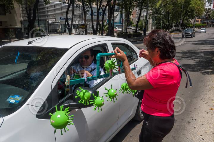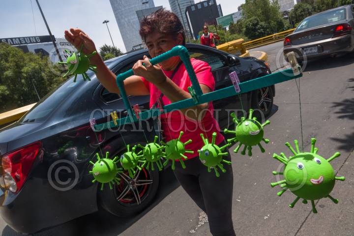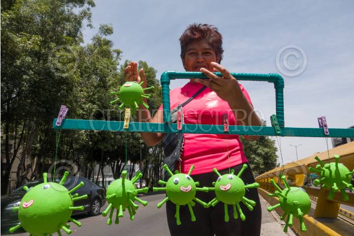 Un comerciante utilizó su ingenio e hizo sus propios Covid-19 para venderlos en los cruceros de la capital