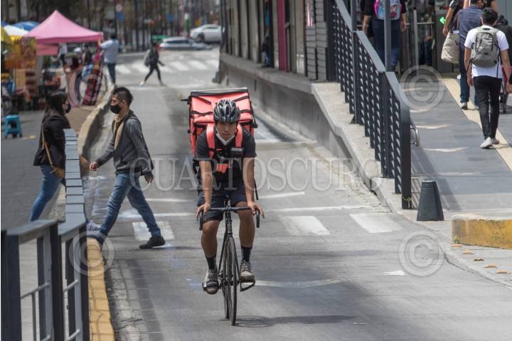 Un joven repartidor de comida por aplicación en avenida Balderas.