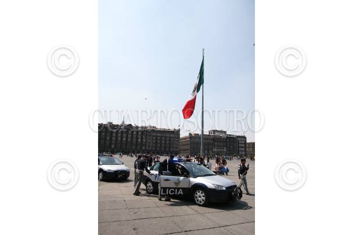 MÉXICO D.F., 16MARZO2009.- Elementos de suguridad pública suben al interior de la plancha del Zócalo, para realizar la detención de un par de vendedores ambulantes. FOTO: GUILLERMO PEREA/CUARTOSCURO.COMMÉXICO D.F., 16MARZO2009.- Elementos de suguridad pública suben al interior de la plancha del Zócalo, la patrulla para realizar la detención de un par de vendedores ambulantes. FOTO: GUILLERMO PEREA/CUARTOSCURO.COM