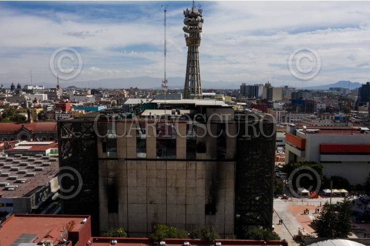 Parte trasera del edificio de la subestación eléctrica del metro en la colonia Centro la cual luce dañada tras el incendio del pasado sábado 09 de enero.