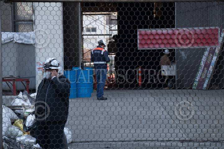 Trabajos en la subestación eléctrica del metro en la colonia Centro la cual luce dañada tras el incendio del pasado sábado 09 de enero.