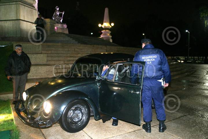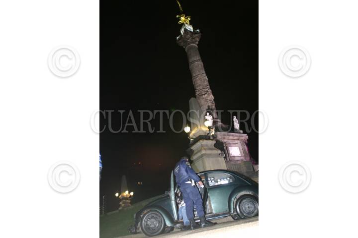 MÉXICO, D.F. 20OCTUBRE2007.- Una persona que viajaba en su automovil en estado de ebriedad, se subio a las escaleras de la culumna del ángel de la independencia. Dicho conductor fue detenido por elementos de la SSP. FOTO: SAÚL LÓPEZ/CUARTOSCURO.COM