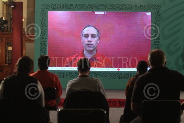 Hugo López-Gatell, durante la ronda de preguntas y respuestas.